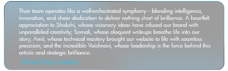 We craft stories, build brands, and skyrocket businesses. From sleek websites to social media magic, we bring concepts to life with style and a touch of wit. Let’s create something that’ll make your competitors orbit in envy. Check out our portfolio to see how we’ve turned brands into icons.